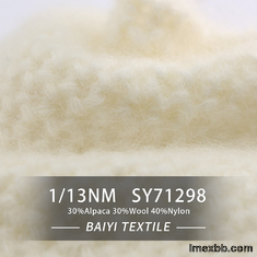 Product name 1/13NM fluffy nylon alpaca wool yarn Article No SY71298 Count 1/13NM Composition 30%Alpaca 30%Wool 40%Nylon weight 1kg-1.5kg(2.2046LB-3.31LB) Color OEM Feature Fluffy, soft and elastic Usage Cardigans, scarves, shawls Package PP bag, carton box