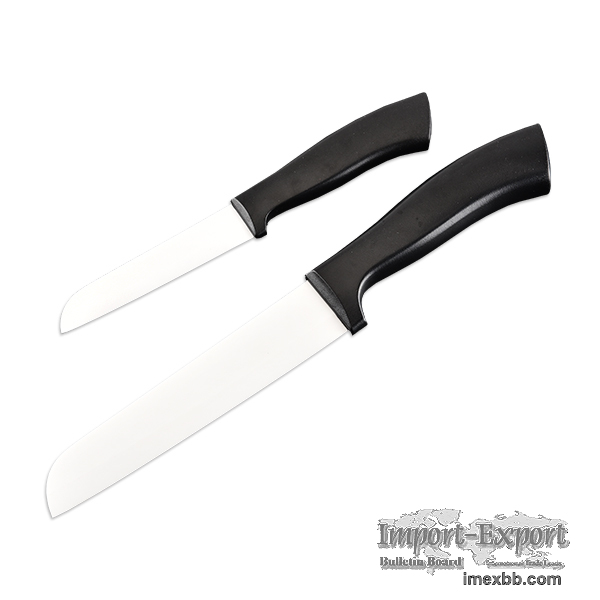 Pros of 2 piece ceramic santoku knife set Cutting meat vegetables and fruits is handy, with no static electricity, no magnetism, little friction, and it is not easy to adhere to food. It can cut meat slices as thin as paper, which is very light and labor-saving, and will not roll the edge. The specific gravity of ceramic material is about 2/3 of metal material, because this is used rise won't have heavy feeling like metal knife in that way, get the love of modern woman.