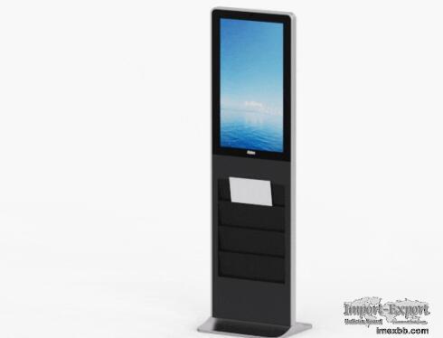 This digital board kiosk has two different sizes, a 22 inch vertical screen / 32 inch horizontal screen, 500-4000 nits brightness optional, and capacitive touch or infrared touch options. The stand is designed as a newspaper organizer, displaying information and storing magazines and newspapers at the same time, ideal for indoor scenes such as banks, restaurants, cafes, and office buildings.