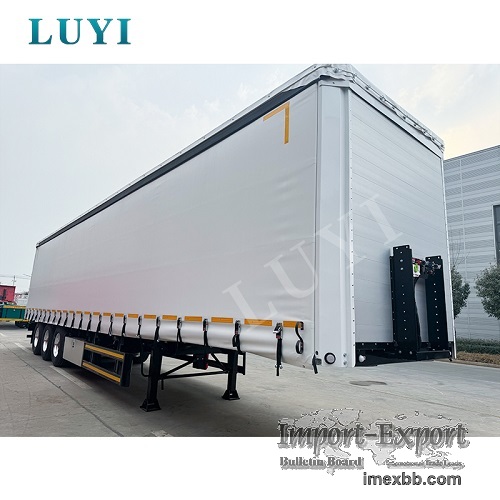 Curtain side semi trailer is a kind of van trailer, it has all the characteristics of a normal van. The compartment is completely enclosed and protected against rain and dust, providing all-day protection for the cargo. Curtain side trailers advantages 1. Both sides of the curtain side van trailer are made of soft tarpaulin flexible material, above is the guide rail and below is the locking structure, when loading and unloading, the curtain can be pulled open quickly, after pulling open the side tarpaulin, inside is the mobile stable pile for fixing the goods, the role is equivalent to the traditional barn railings of flatbed curtain side trailers. This stable pile can also be moved back and forth arbitrarily, which is convenient for loading and unloading goods with forklift pallets, and both sides can be loaded and unloaded at the same time, thus the loading and unloading efficiency is very high. 2. The weight of the side curtain is significantly lighter than that of the rigid side panel, and after the stable pile is locked and fixed to fix the cargo, more cross rails can be set up on curtain semi trailer, and in order to reduce the weight as much as possible under the premise of guaranteeing the protection strength, the cross rails are generally made of aluminium alloy or wood, so the whole side curtain trailer is lighter than that of a van, and reduces the self-weight. 3. From the appearance, the side curtains are flat and suitable for printing various patterns, thus the appearance of curtain side semi trailer is significantly more beautiful than the vans.