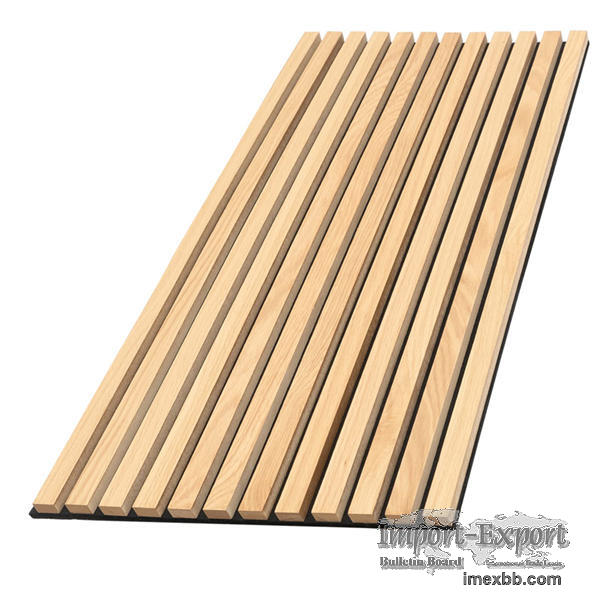 3D Wood Acoustic Panel Product Description Wood slat wall panels, also known as wood slat walls or slatted wood panels, have gained popularity in interior design and architecture due to their aesthetic appeal and practical benefits. Item Name: Wood Slat Acoustic Panel Material: PET felt+MDF+Wood Veneer Size: 2400mm*600*22mm or customized Color: white oak, walnut, smoke oak and more Packaging: shrink foil+carton+pallet or customized Acoustic: NRC 0.60 ~ 0.90 MOQ: 500pcs Characteristic: Natural and beautiful, sound absorption lowering noise, easy to install. Beautiful wood slat acoustic panel with added benefit of superior sound absorption.