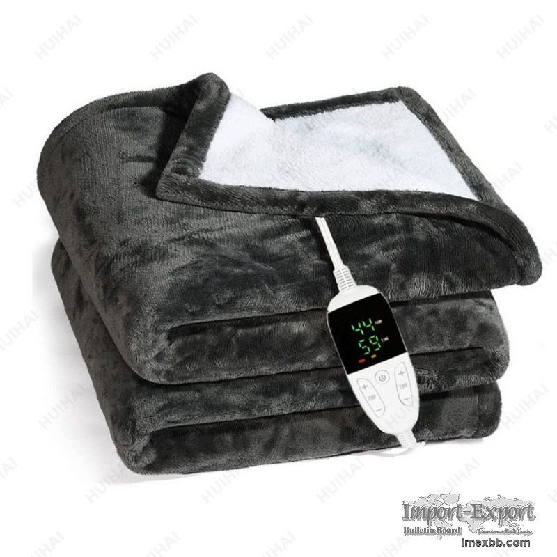 Homemate heated blanket use the intelligent temperature adjustment technology. Homemate heated blanket have multiple levels and long hours auto shut off.Temperature range is 86-122°F. There is only one button on the controller to control the temperature, very convenient to use, even the elderly, the sick, and the disabled can use it easily.Power Cord is 10 feet, this long cord makes the use of the blanket more flexible, can be used on the bed, on the sofa, can be used in the study and office, very convenient. Blanket Specifications Product name Adjustable Electric Blanket For Winter Code HH-Electric blanket Material Flannel, Polyester, Fleece Color Grey, Black, White and Customized Size 50" x 60"(Throw) 62" x 84"(Twin) 72" x 84"(Full) 84" x 90"(Queen) 90" x 100"(King) Voltage 100-120V Heating control 10 heat settings Timer control 8 time settings Usage Living room, Bedroom