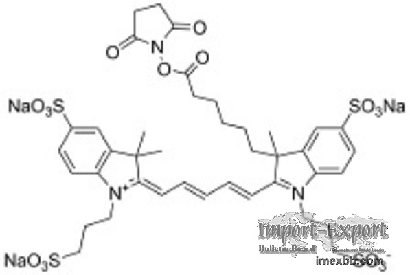 Alexa 647 NHS ester(Alexa Fluor 647 NHS Ester equivalent) is a bright, far-red fluorescent dye with excitation ideally suited for the 594 nm or 633 nm laser lines, used for cellular visualisation and labeling of antibodies, peptides, proteins, modified oligonucleotides, and other amine-containing molecules.