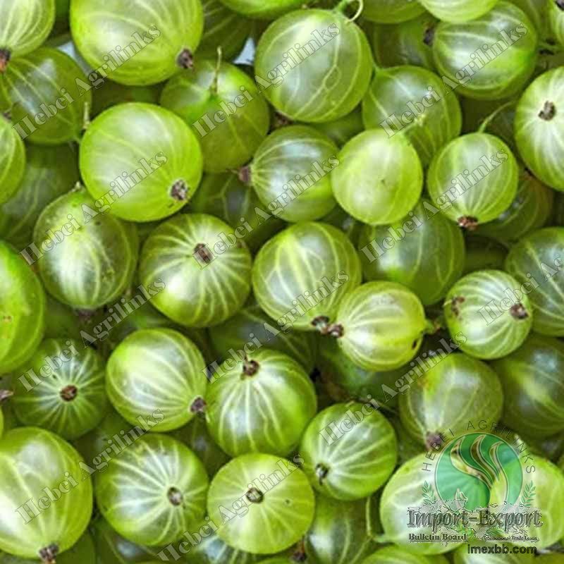 Agrilinks Frozen gooseberry SPEC: Dia 8-15mm; VARIETY: cultivated; SEASON: July Product Description Frozen gooseberries should correspond with the definition «IQF», i.e. should be quick frozen fruits with the temperature inside any part of container equal or less than minus 18℃. Raw materials used should be fresh and of a good quality. IQF gooseberries should be really individual with no aggregation between each other, free flowing. The product is free from insects, pest, spoliation, disease, decay and purities. Deep frozen, wild , unwashed. Size/count: whole Colour: , typical green colour of the raw materials Taste: typical of the raw materials, without any off-taste. Packing: 10kg/carton or as per customer’s request Foreign substance: non existence Broken pieces: non existence Metal/glass/plastic/stone/wood/sand/s , oil or any other foreign body: non- existence. Contamination: pesticides, fungicides, metals in line with import country regulations and China National Standards.