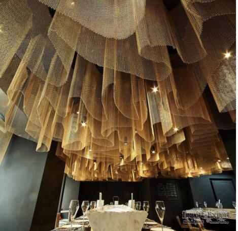 Aluminum Coil drapery can be decorated in hotels, restaurants, salons, retail stores, office, exhibition halls, shopping center market malls, lobbys as interior space room divider, ceilings, window treatments.