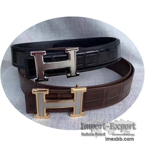 Belt Men And Women Crocodile Pattern H Letter Gold And Silver Buckle Double
