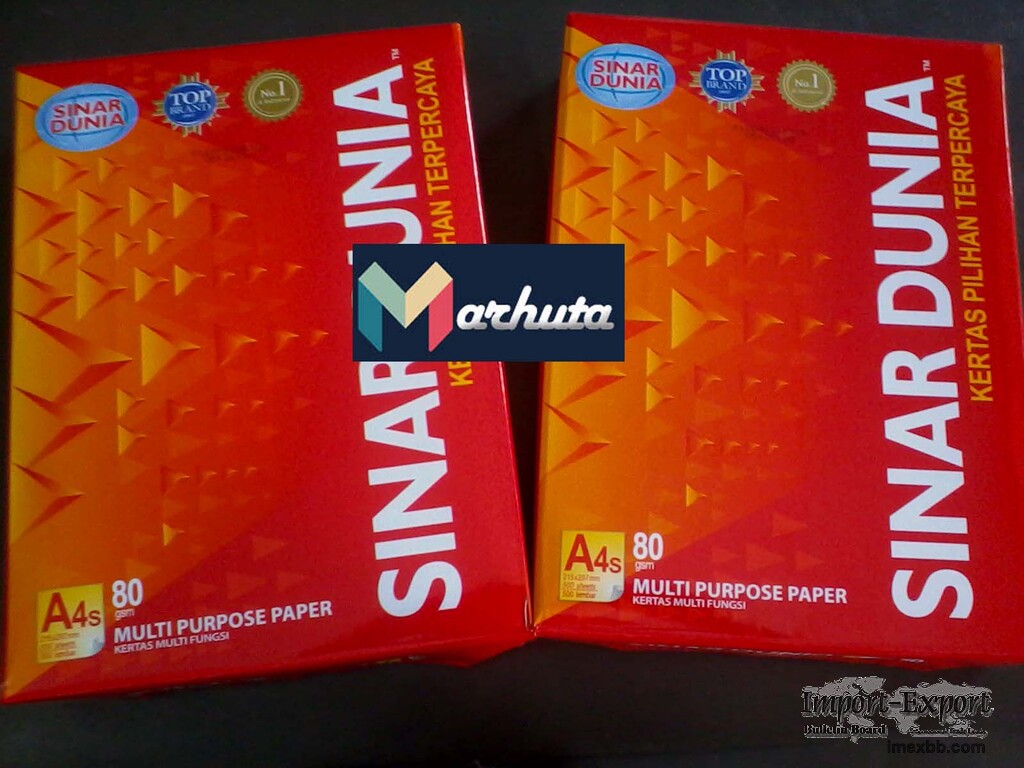 Best quality Sinar Dunia A4 paper 80 GSMSize: A4 Minimum Order: 7800 packs SOURCE: Import-Export Bulletin Board (https://www.imexbb.com/)