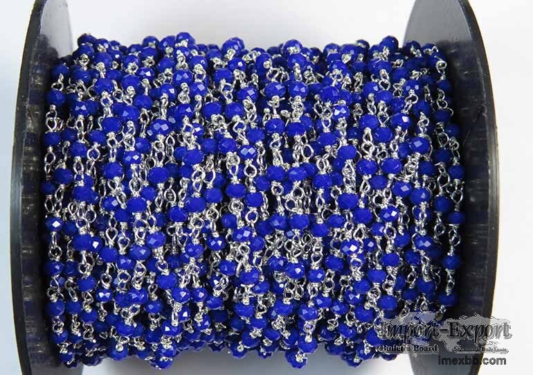 Blue Crystal 3mm Wire Wrapped Rosary Style Chain