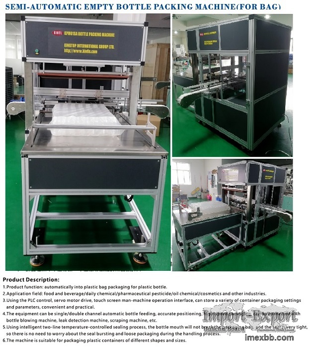 We supply empty bottle bag-packing machines: It arranges and places empty plastic bottles into plastic bags and then seals the package. KPM01SA Empty Bottle Bag-packing Machine, semi-automatic Video link: https://fb.watch/lGe4JtCdIf/