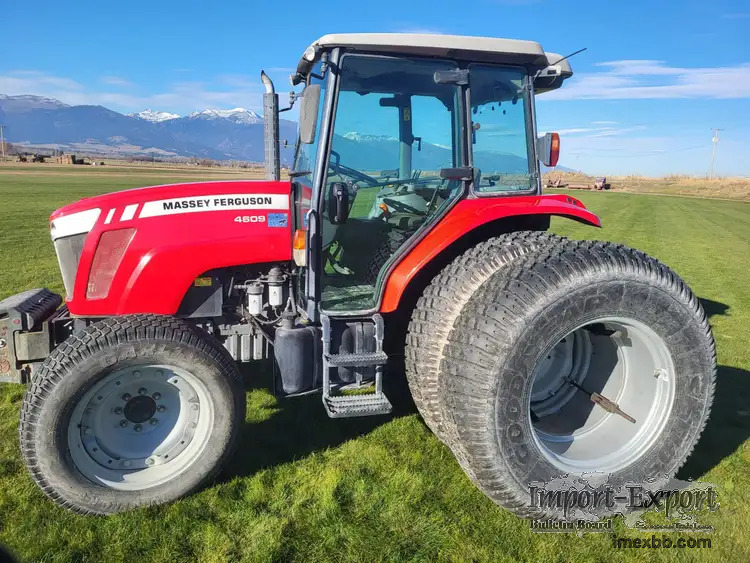 The Massey Ferguson 4609, part of the 4600 Series, is a versatile and powerful utility tractor, equipped with a 90 HP AGCO POWER 3.3L engine. Its maintenance-free emissions system and advanced hydraulic capabilities make it an efficient choice for demanding farm operations. The tractor is optimized for loader work with high-flow hydraulics and easy control via the integrated loader joystick. Ideal for confined spaces, the 4609 offers options for both open station and cab configurations, enhancing operator comfort and productivity. With its robust power shuttle transmission, operators can shift easily between forward and reverse, ensuring high efficiency across various agricultural tasks.