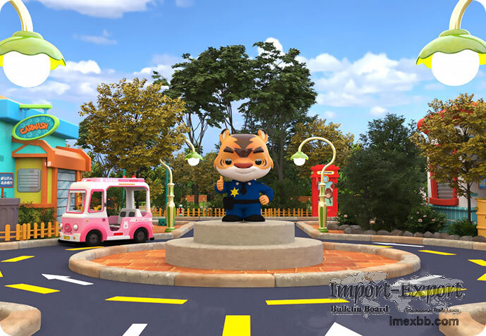 Experience The driving school for kids creates the overall landscape of the town based on the stories to provide visitors with an immersive experience.