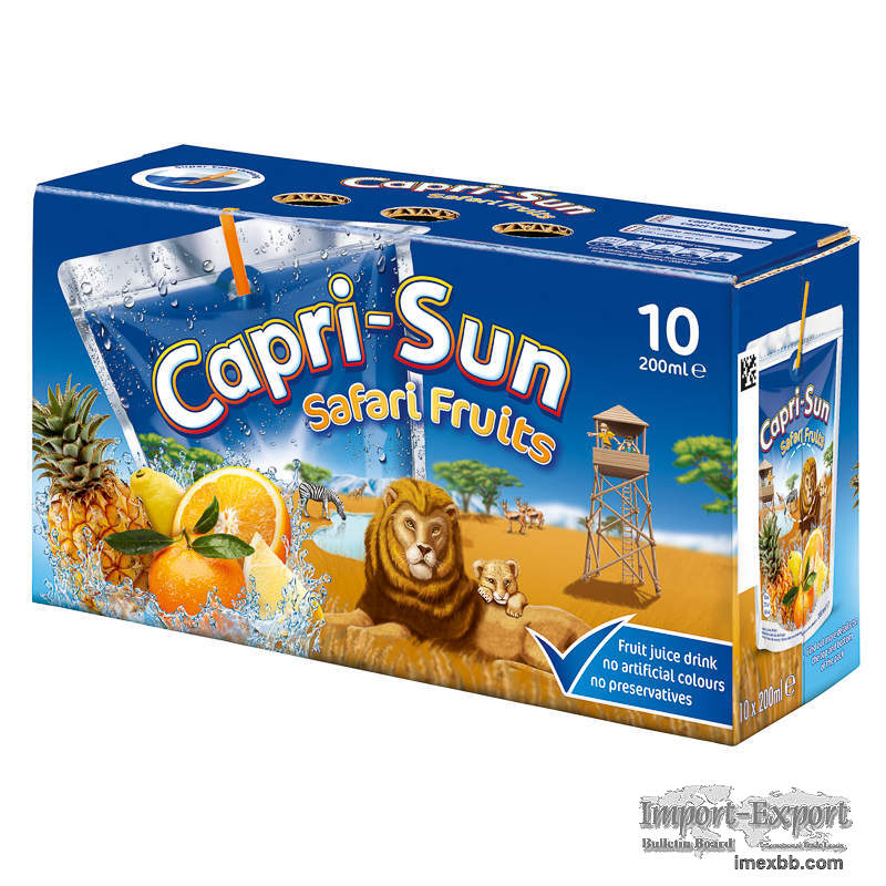 The new multivitamin Capri Sun is full of refreshment, vitamins and taste. Orange, apple, passion fruit, kiwi, pineapple, grapefruit, lime and banana give everything here. And all of that in a flexible drinking pack.