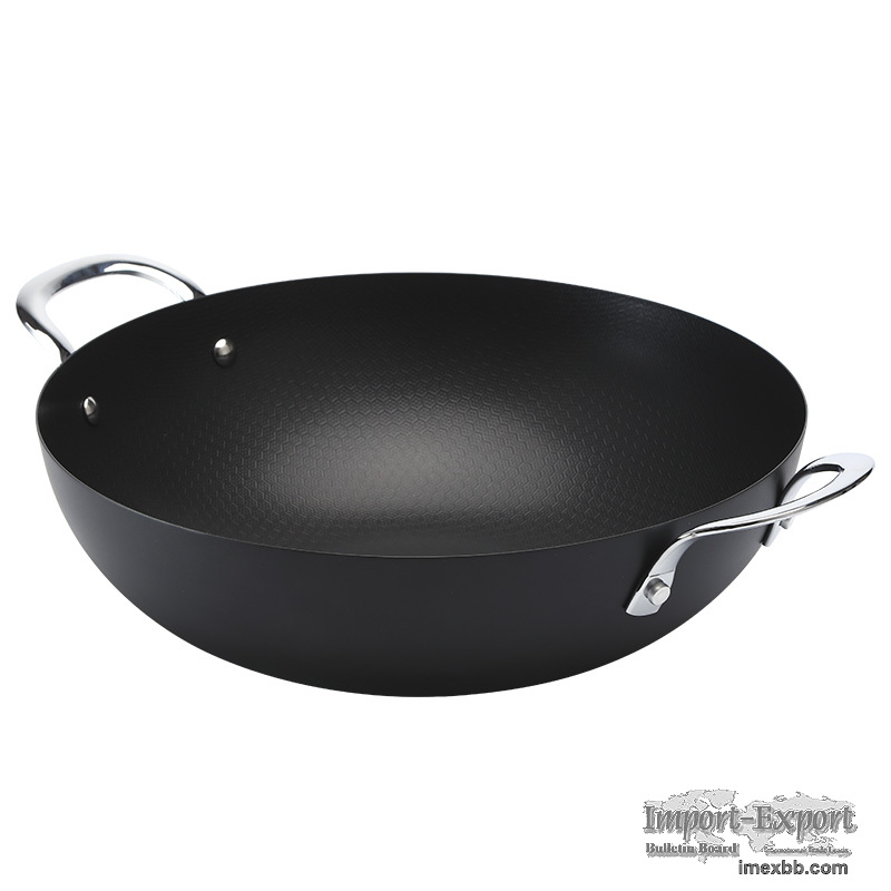 Compared to coated wok pan, the surface of this carbon steel pan is nitrided for non-stick, non-rust, and scratch-resistant, easy-to-clean properties. The nonstick wok help you cook healthier meals with less oil, and keep more nutrients and flavor. The wok pan with lid ensures that there is no chemical coating, so you don't have to worry about toxic substances and coating falling off, making your cooking healthier and more secure. Premium Material and Fast Heating: The wok pan is made of high-quality black carbon steel material, forged at high temperatures, and produced by traditional production technology. the inner walls are thickened to make it stronger for superior performance and durability, allowing the wok pan to heat up faster and dissipate heat more evenly, which can save more cooking time and achieve optimal cooking performance. Comfortable Handle and Flat Bottom Design: The carbon steel pan handle use solid wood anti-scalding design, which provides safe stir-fry and comfortable grip at high temperatures. The handle can be detached or hung for storage to save space. The wok is designed with a flat bottom to make sure that it sits securely on any stovetop, like electric stoves, induction stoves, gas stoves, and other heat sources. Cooking is easier, faster, and more efficient with this wok pan. Cusom Casserole Parameter Model Number: IMESH-K3208 Name: Saucepot Brand: Imesh Material: carbon steel Color: black Shape: flat bottom Size: 30/32/34/36cm Characteristic: nonstick Packing: brown box+outer carton Minimum Order Quantity: 50 Sample Service Maximum Number of Samples Requested at a Time: 1 Sample Unit Price: 10 Sample Pack Description: brown box Customized Service Logo Customization: yes Outer Packaging Customization: yes Pattern Customization: yes https://www.imesh-kitchenware.com/