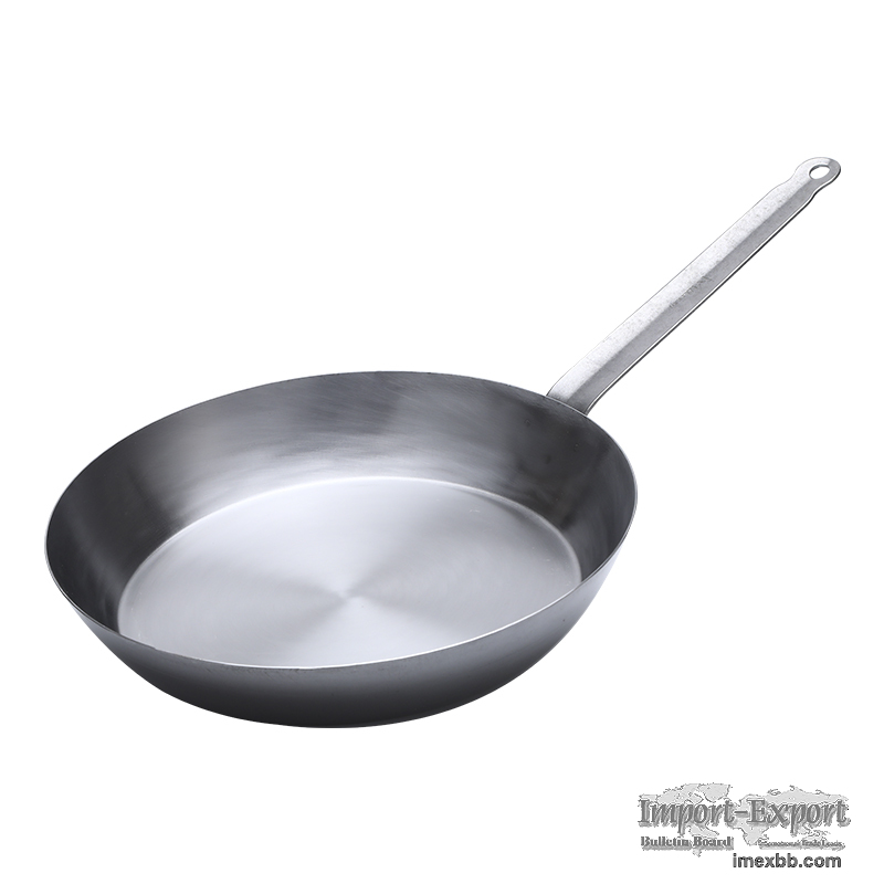 Compared to coated wok pan, the surface of this carbon steel pan is nitrided for non-stick, non-rust, and scratch-resistant, easy-to-clean properties. The nonstick wok help you cook healthier meals with less oil, and keep more nutrients and flavor. Carbon Steel Frying Pan Parameter Model Number: IMESH-K2915 Name: Frying Pan Brand: Imesh Material: carbon steel Color: sliver Shape: flat bottom Size: 18/20/22/24/26/28/30/33/36/40cm Characteristic: nonstick Packing: brown box+outer carton Minimum Order Quantity: 50 Sample Service Maximum Number of Samples Requested at a Time: 1 Sample Unit Price: 10 Sample Pack Description: brown box Customized Service Logo Customization: yes Outer Packaging Customization: yes Pattern Customization: yes