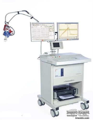 Light, bi-directional sensor that is absolutely insensitive to humidity Micro fuel cell for O2 measurement (maintenance free) Quick responding and highly stable gas analyzers for true breath-by-breath measurements Free combination of parameters and graphs for individual result protocols Flow/volume under load (intra breath) Indirect calorimetry (nutrition) Spirometry and MVV measurement included in standard version