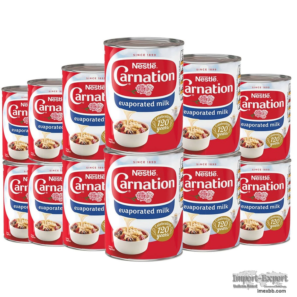 Add rich, creamy flavor to your recipes with this Carnation evaporated milk! A shelf-stable product that is great for replacing milk and cream, this evaporated milk is perfect for keeping on hand in your commercial kitchen. You can use it in a wide variety of recipes to add creaminess and a rich flavor. It is great for use in savory dishes like mac and cheese, mushroom sauce, or seafood risotto and desserts like creme brulee or chocolate mousse. You can even use it to create decadent ice cream or pudding!