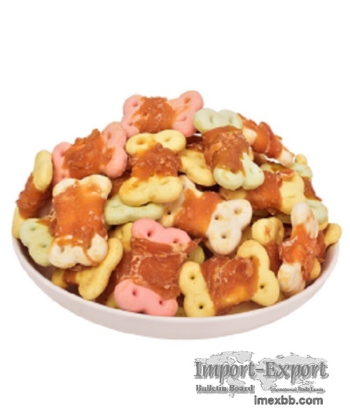 The outer bone shape biscuit wrapping meat is made of chicken breast meat, which is the part of chicken body rich in nutrition and delicious taste. It is high in protein, low in fat, easy to digest and absorb, rich in various trace elements required by pets daily, which is conducive to the health of pet body and hair.