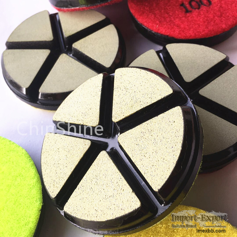 – Ceramic bond structure can removes scratches left behind by metal-bond diamonds to prepare concrete for polishing shortly, it effectively reduces polishing time. – Single-step removal of metal scratches dramatically reduces labor cost, so as to increase the working efficiency. – Extra sharpness, long life and better gloss, stable performance, especially when working on harder concrete.