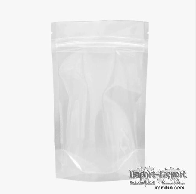 Multilayer clear barrier film LLDPE/PET; Pouches complies with FDA food use regulations. These transparent stand up pouches are perfect for companies that deal with flexible packaging. We offer clear stand-up pouches with a tear notch and zip lock. Pouch stand-ups make the most of shelf space. Pouches reduce freight and storage space costs by shipping flat. The best use case for stand-up pouches is to package dry items like cookies, almonds, candies, etc.
