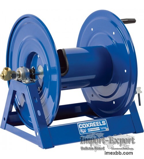 Coxreels® 1125 Series "Competitor" hand crank hose reel has the features demanded by industry professionals. The industry-preferred design features a sturdy one-piece all welded "A" frame base, low-profile outlet riser and open drum slot design provides a non-crimping, flat smooth hose wrap. U.S.A. Oversize shipping charge applies.