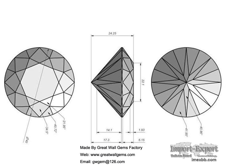 Great Wall Gems Factory produce and supply high quality cubic zirconia (CZ) diamond replicas and lab grown diamonds for the diamond companies at the most competitive prices in the world!! The quality is steady and strictly inspected. We have produced many high quality cubic zirconia diamond replicas and lab grown diamonds for the diamond companies of Belgium, Holland and Switzerland. If you need the high quality cubic zirconia diamond replicas or lab grown diamonds and decide to place orders, please tell us the sizes and quantity you want by sending us an email directly. We will send you our prices very soon. As a factory, we have the ability to give you better prices than any other suppliers in the world!! Note: If you need our products, please only contact us via our email directly. Email: gwgem@126.com Website: www.greatwallgems.com