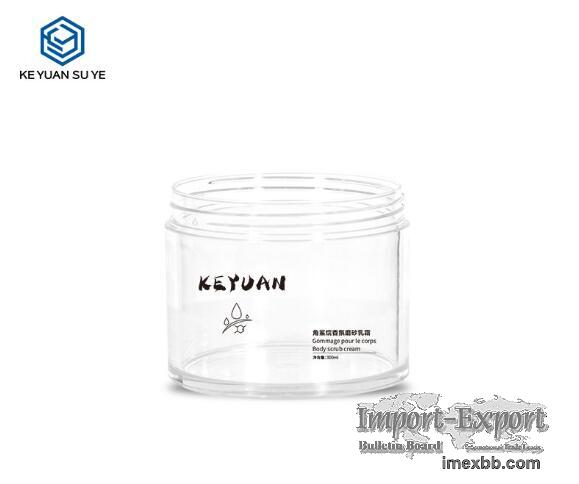 KEYUAN specializes in crafting custom cosmetic plastic jars to meet the diverse needs of cosmetic companies worldwide. Whether it's a luxurious body scrub cream or a revitalizing face mask, our team works closely with clients to design and produce plastic jars that reflect their brand identity and product vision. With a focus on material quality, functionality, and aesthetic appeal, Keyuan ensures that each jar not only showcases the product effectively but also enhances the overall customer experience. From selecting the perfect plastic material to adding unique decorative elements, we strive to provide tailored solutions that elevate cosmetic packaging to new heights of innovation and excellence. KEYUAN has a wide range of containers for packaging bath and body care products such as lotion, cream, shampoo, conditioner, and hair products. This plastic jar is one of the best options that could be suitable for personal care, using PET raw materials use with 100% brand new, recyclable, environmentally friendly and perfect available for screw cap. Cosmetic plastic transparent wide mo , uth jar, the whole body is smooth, is a high-quality thick wall cream jar, can be used for personal care, face cream, eye cream, and other products packaging. KEYUAN excels in crafting custom body scrub cream jars, tailored to the unique needs of cosmetic brands worldwide. Our jars are meticulously designed and manufactured to showcase the luxurious texture and indulgent fragrance of your body scrub cream while reflecting your brand's identity and values. With a focus on quality, functionality, and aesthetic appeal, Keyuan ensures that each jar provides a seamless user experience, from the easy-to-open lid to the elegant design that graces bathroom shelves. Let us partner with you to create a custom body scrub cream jar that captivates consumers and elevates your brand to new heights of distinction and desirability.Thank you for visiting Cosmetic Plastic Jars. Any enquiries or quote KEYUAN.