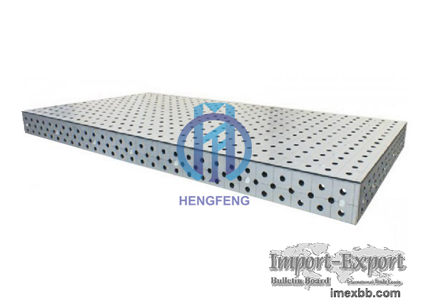 3D Welding Table is designed for the manufacture of welded products; Made from high quality cast iron or steel, it has 5 precision machined working surfaces (1 top + 4 side surfaces). 3D welding table has good durability and performance, it offers you a flexible working surfaces for clamping, assembly and fabrication of workpieces with variable design to perform your welding operations. Material: steel welding table: Q355 cast Iron welding table: HT 250 or HT300 Hardness: steel welding table: HV150-210 casting welding table: HB170-210 nitrated steel welding table: HV450-500 nitrated casting welding table: HV400-500 Precision machined working surfaces: 5 (1 top + 4 side surface), can be expandable by support tools. Hole diameter: 28mm Grid spacing: 100±0.05mm Precision: table horizontal precision: 0.1/1000mm table vertical precision: 0.1/200mm drilling center accuracy: +/- 0.03mm Hole pitch: 100mm Perimeter ruler engraving: 1mm scale Side surfaces height: 200mm Be reinforced on the underneath side by ribs Surface treatment: standard/ nitrided Loading capacity: 2 tons weight loading capacity. Supporting: legs or steel frame Fixtures: 1. Tools for supporting: U-shaped cube case, L-shaped cube case, Angle supporting, and Angle gauge 2.Spare parts for locating 3. Tools for clamping and fixing 4. Spare parts for locking working pieces 5. Auxiliary tools Features OF Precision 3D Welding Table: • Superior Quality: Made from high-quality raw material, 3D welding table offers exceptional sturdiness and stability, providing a reliable surface for precise welding. • 3D Surface Design: The innovative 3D surface design ensures that the workpieces stay firmly in place, preventing any unwanted movement during welding. • Versatile Fixturing Options: Equipped with wide fixturing options, 3D welding table allows you to secure various workpieces securely, accommodating complex welding projects easily. • Heat and Spatter Resistant: The cast iron construction has excellent heat and spatter resistance, ensuring the welding table remains in pristine condition over prolonged use. • Easy Cleanup: Due to its smooth surface, cleaning up after welding projects becomes very easy. 3D Welding Table Applications: Aerospace Industry Fabrication Projects Automotive Repairs Industrial Maintenance Machine Manufacturing