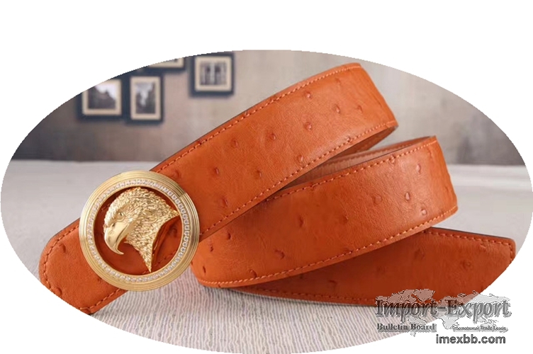Eagle Head Belt Male Ostrich Grain Cowhide Leather Belt With Diamond Eagle