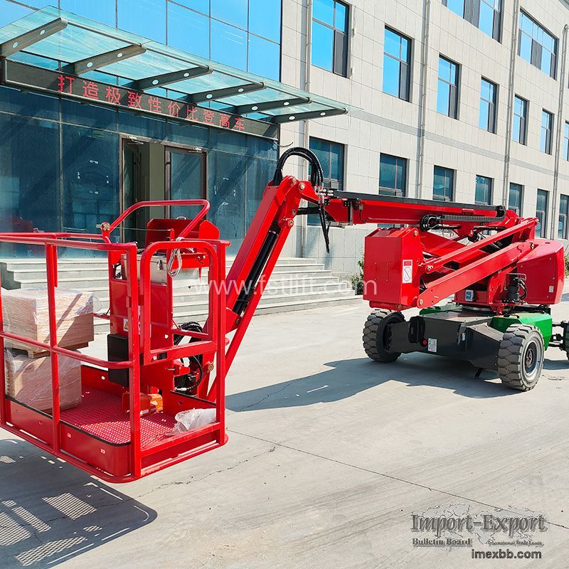 The power of self-propelled articulating man lift is divided into diesel engine models and DC motor models. The lifting height ranges from 10 meters to 32 meters, and all electric articulated boom lifts can walk at full height, extend the boom for lifting, and rotate 360 degrees. Different models are equipped with different power sources to meet different indoor and outdoor requirements. Electric Articulated Boom Lift Features 1. Effective geometric design and ultra long crossing radius enable this electric boom lift to effectively avoid complex obstacle operations. 2. Compact industrial design chassis. 3. Excellent ability to swing and rotate in place. 4. Simple operation and good stability. 5. Quality assurance: The electric articulated boom lift has passed ISO and CE certification Aerial work platforms are widely used in the fields of building decoration, enterprise production, sports and leisure venues, mechanical equipment maintenance, military, high-altitude equipment installation, airports, stations, ports, warehouses and other logistics fields. As a professional self propelled boom lift factory, Fast Heavy Industry Group provides comprehensive and detailed on-site technical consultation, construction equipment reference plans, and the most suitable product plans for free!