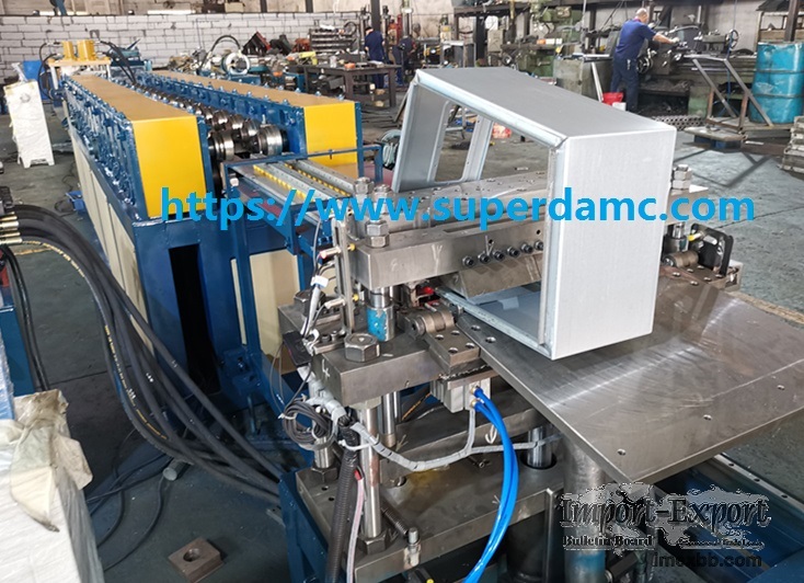 This production line is equipment for production of distribution boxes. The strip coil to be processed is manually placed on the uncoiler, and then corrected and tensioned. After leveling, it enters the hydraulic pre-punching and punching notch, and is sent to the forming machine by the guide device to form. Under the frictional damping action of the forming roller and pressure roller, after entering the bending part at a linear speed of 0-13m, the box is cut and bent as required, and then manually packed away. This production line produces 2-3 enclosures per minute. the production box quantity speed according to different product specifications. Electric steel wall box IP66 roll forming machine manufacturer https://www.superdamc.com
