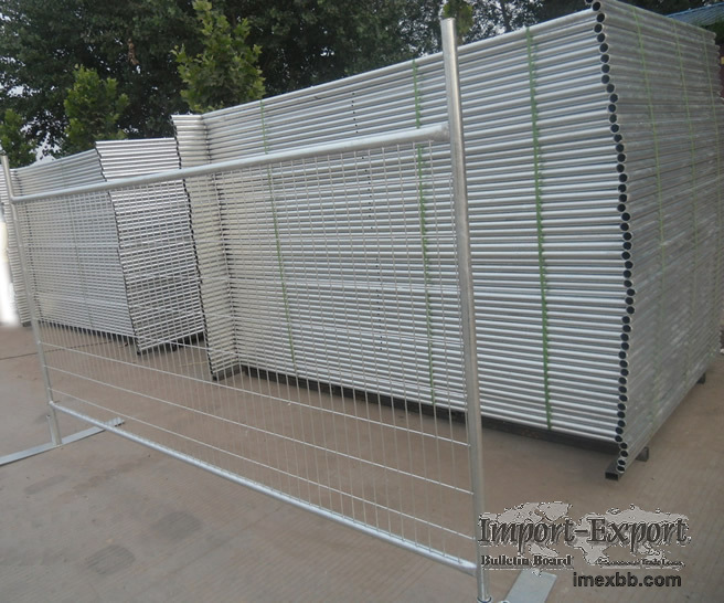 Park Project Security Fencing with Round Tube Frame, Portable Temp Public Work Panels Fence Height: 2m Panel Width: 3m or custom Wire and Frame Tube: 33 mm dia, 2mm hot dip galvanized pipe Mesh opening 250x50 mm Welded Mesh 3mm, GI wire Base: 240x130x550 mm PVC base fill with concrete. Additional accessories : clamp Frame Tube Options: Round tube, square tube. Finishes can be Galvanized; Vinyl coated; PVC coated.
