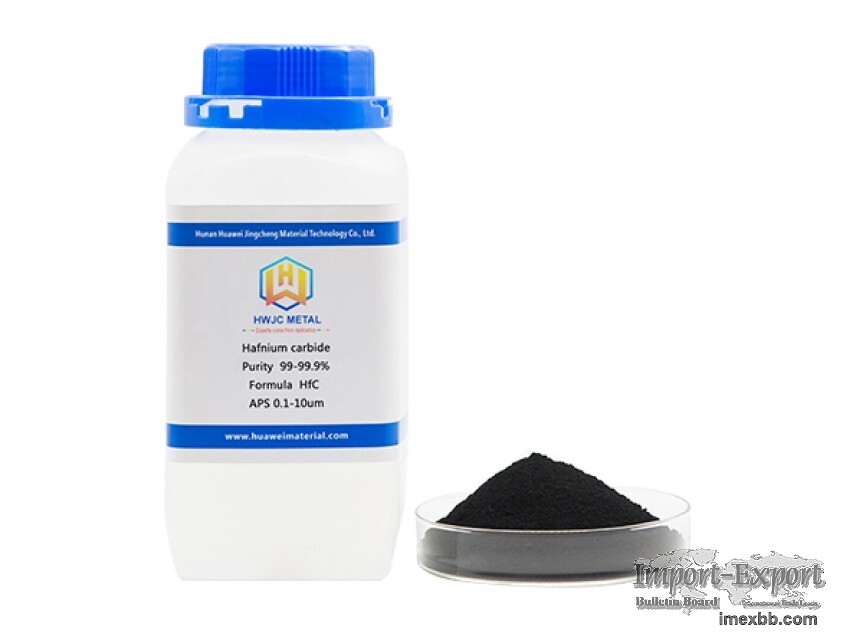 Hafnium carbide (HfC) is a gray metallic powder with a NaCl-type cubic crystal structure. It has the highest melting point among known single compounds. Hafnium carbide has high elasticity index, good electrical and thermal conductivity, very small thermal expansion coefficient and good impact resistance performance, widely used in hard alloy, aerospace, atomic energy, electronics, and high material technical field, such as hard thin film coatings. It is the most important basic materials of making a missile, rocket nozzle throat lining and satellite, spacecraft hood parts for thermal protection.