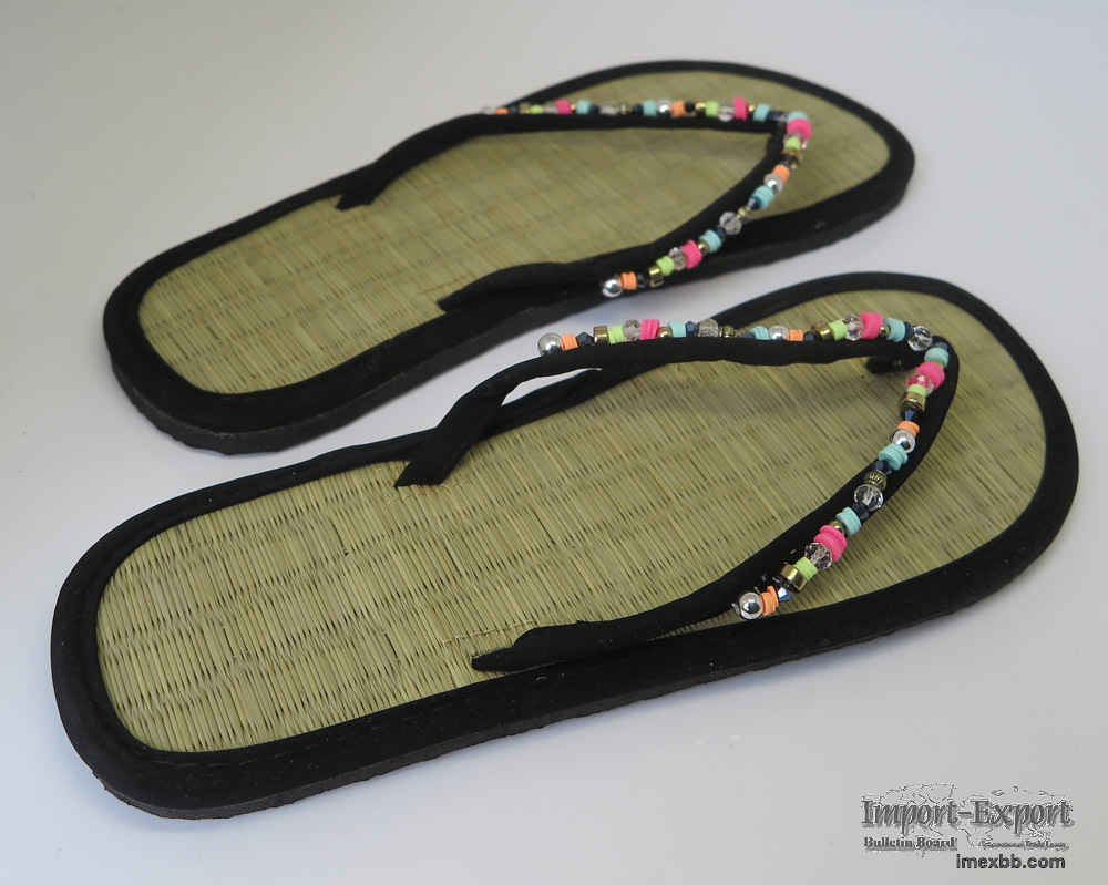 women straw slippers EVA embossed logo outsole, natural straw insole,fabric arround sole fabric strap with colorful decoration 12mm thickness printing logo lable outsole size:36-41 putianbest has 12 years experience in offering our customers special requirements for EVA slippers,Rubber slippers,PE thongs,PVC sandals,fabric footwear,straw flipflops,EVA injection,garden clogs,which will use silk printing,offset printing,embossing,demroidery,dying cut and so on