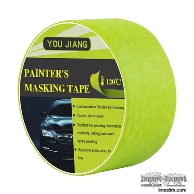 Product name Painting masking Tape Basic material Crepe Paper Adhesive Rubber Common size 1inch*50Y or customized Resistance High Temperature 120℃ (100,120,150 ℃ available) Color Colorful, Accept customized Advantage High adhesive, Easy to tear, No Residue, UV resistant, high temperature resistant, Writable Usage Interior Decoration, Household Appliances Painting and Luxury Car Painting.