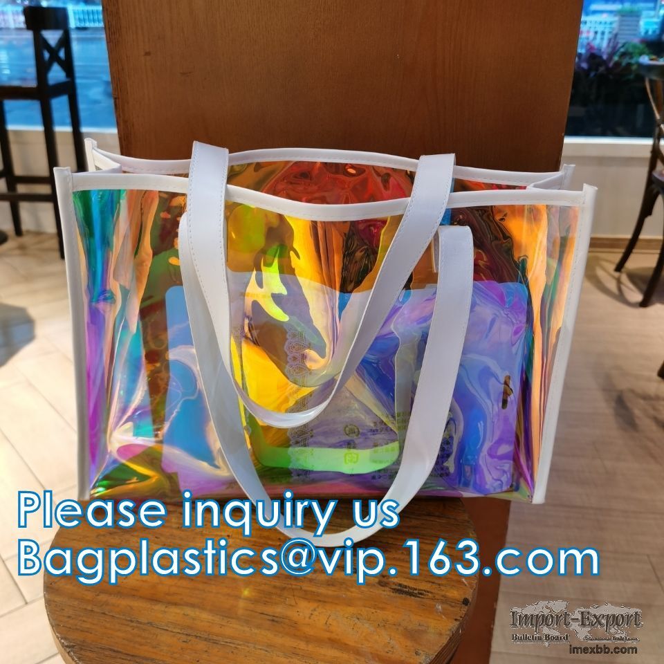 HOLOGRAPHIC NEON TOTE PVC BAG,VINYL SHOPPING SHOPPER,TOILETRY BIKINI SWIMWE