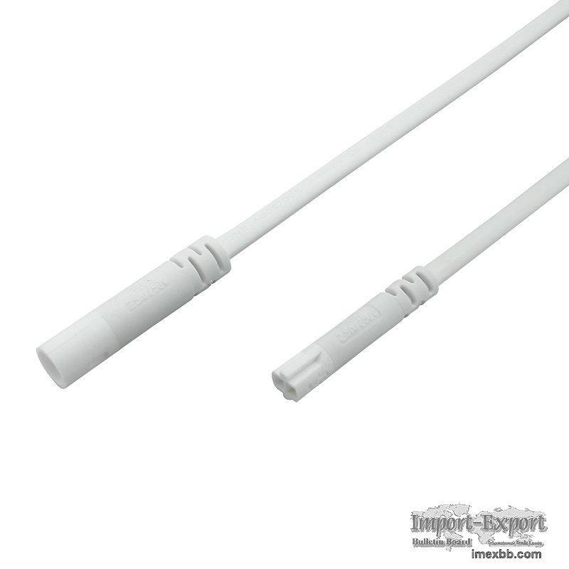 7. 6mm Mini HVL7 60 Connector System 7.6mm Mini HVL760 Steck S ysteme 250V/2.5A 2pole high voltage connector system for luminaires Connection:max.2.5A ,250V AC Cable: VDE H03VVH2-F 2×0.75mm² The 7.6mm MiniHVL760 connector system is designed according the IEC60320 standard for lighting industry applications. Applicable i n power connection and coupling between lamps such as lighting wiring in offices, kitchen, bathroom, shop and household furniture, display cabinets and mountable lighting. 7.6mm outer diameter of mini plug to fit into 8 mm furniture holes