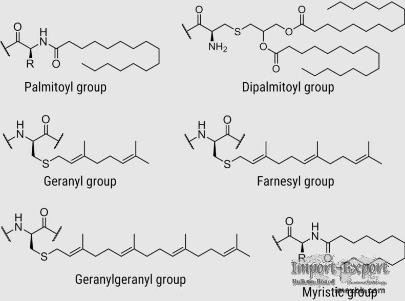Myristic acid, palmitoyl, dipalmitoyl, geranyl, farnesyl, geranylgeranyl, and other lipids are only a few of the lipids that may be linked to nearly any peptide sequence by CPC due to its significant experience and knowledge in the synthesis of peptides containing lipid moieties.