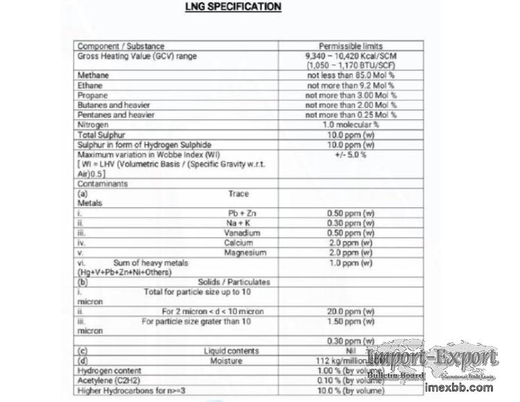 (c) Liquid contents (d) Moisture: 112 kg/million SCM Hydrogen content: 1.00% (by volume) Acetylene (C2H2): 0.10% (by volume) Higher Hydrocarbons for n>3: 10.0% (by volume) Inspection: SGS or Intertek I need the LNG delivered to Korea Cheon & Tong Young Port on a CIF basis Payment Terms: SBLC/DLC & Wire Transfer MT 103