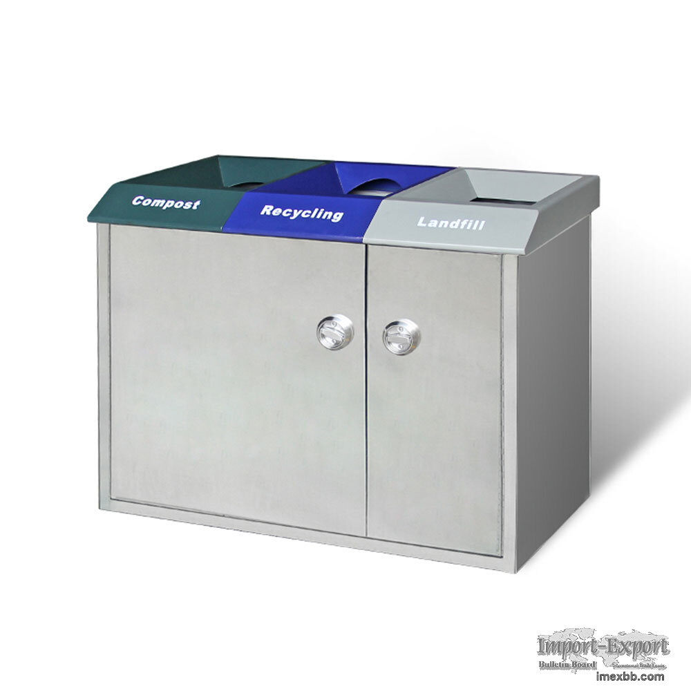 Product Features 1-Lock Stainless Steel waste bin Products 2-The entire unit is fabricated from stainless steel for maximum fire protection. 3-Great for any commercial and institutional organizations with source separation programs or recycle programs.