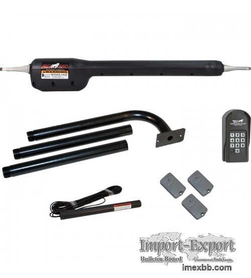 Heavy-duty single swing gate opener for use with single panel gates measuring up to 18ft. or weighing up to 850 lbs. Exclusive Dual Sense Technology meets UL325 6th edition standards for additional protection and safety Includes 3 single-button remote transmitters and all required installation hardware Digital keypad with mounting post provides coded hands-on access Wireless exit wand allows for easy handsfree exit with no remote or keypad required Interactive DVD provides easy, detailed installation directions Solar capable with the addition of an optional Mighty Mule 5 Watt solar panel (Item# 3467) or 10 Watt solar panel (Item# 510726), each sold separately
