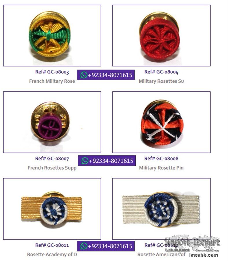 Military Rosettes SupplierMilitary Rosette Manufacturer, French Rosettes, French Rosettes Supplier, Minimum Order: 25 pieces SOURCE: Import-Export Bulletin Board (https://www.imexbb.com/)
