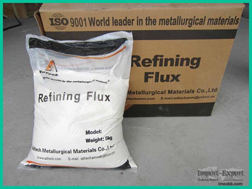 Refine Flux has the following characteristics 1.It has a certain dissolving ability for oxides. 2.Enough to increase the fluidity of molten flux. 3. It can effectively remove the oxide film on the surface of the melt and improve the degassing effect. 4. Increase the surface tension of the mixed molten salt, spheroidize the molten salt that has adsorbed oxides, facilitate separation from the melt, reduce the loss caused by the solid molten slag entrapped in aluminum, and increase the surface tension of the flux-melt , Accelerate the process of volume adsorption inclusion.