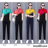 Monisa sports leisure colorful mixed suit with short sleeves and long trous