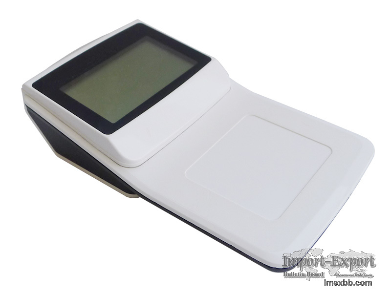 Overview MR880 series desktop contactless IC card reader is based on NXP series RF chip with high performance STM32 MCU. The communication is according to USB PC/SC standard. The reader fully supports the IC card according to ISO14443 and ISO15693 standard, especially completely supports ISO14443-4 contactless CPU card. The RF interface and protocol process is with EMV2010 LEVEL 1 certification ability. The reader builds in 4 SAM slots, and fully supports SAM according to ISO7816. Main Characteristics • 240 * 128 pixel LCD displayer • 16 pixel, 24 pixel or 32 pixel Font available • Chinese, English or Russian Font available • Compatible USB PC/SC interface • 120MHz High speed MCU and advantage firmware provide very high card process speed • RF protocol process with EMV2010 LEVEL 1 certification ability Technical parameters • PCD: CL RC663 • Working frequency: 13.56MHz • RF standard: ISO14443A, ISO14443B, ISO15693 • Operating distance: 100mm (MIFARE One, typical) • SAM slot: 4 slots, support ISO7816 (T=0 & T=1, support PPS, Max. 230400bps) • Display: 4 LED(Red,Yellow,Blue,Green) + LCD (240 * 128 pixel) • Buzzer: Build in • RTC: Yes • Interface: USB PC/SC compatible • Power supply: DC2.5V~12V • Power consumption: 0.9W • Dimension: 158mm * 92mm * 42mm • Weight: About 220g • Operating temperature: -25 ~ +85 ℃ • Storage temperature: -40 ~ +125 ℃ • PC software: PCSC, download from http://www.jinmuyu.com • Sample code: VC • ISP: Support • RoHS: Compliant