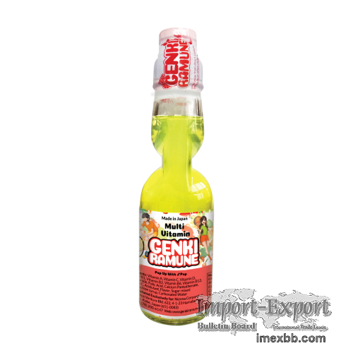 Multi Vitamin Soda - Genki Ramune Healthy " Multi Vitamin Genki Ramune Soda – Instant energy booster. Instead of popping a multivitamin pill, do it with a soda pop the fun way!! Genki Ramune Soda from Japan contains Ascorbic acid and a bouquet of vitamins (A, B1, B2, B6, B12, C, D & E) essential for our body. Keep your cells, ligaments, tendons and skin healthy. Best antioxidant to reduce the effect of free radicals. Recharge, refresh, regain health and energy while having your favourite fun drink.