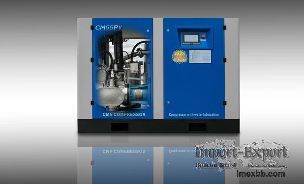 Features of CMN No Oil Water Injected air compressor without oil Whole machine is free of any lubricating oil, ensuring absolutely oil free compressed air supply. The operating temperature of the compressor is low, typically below 45 degrees Celsius. Low maintenance costs, requiring only the replacement of air and water filter. Isothermal compression, high efficiency with direct coupling of the air end and motor. The air end rotates at a speed of only 3000 revolutions per minute, resulting in low noise and vibration.