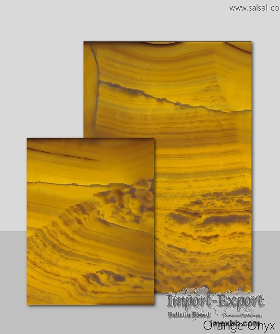 Orange OnyxNature: Slab, Tile, Quarry Blocks and Cut to Size Minimum Order: 380 square metres SOURCE: Import-Export Bulletin Board (https://www.imexbb.com/)