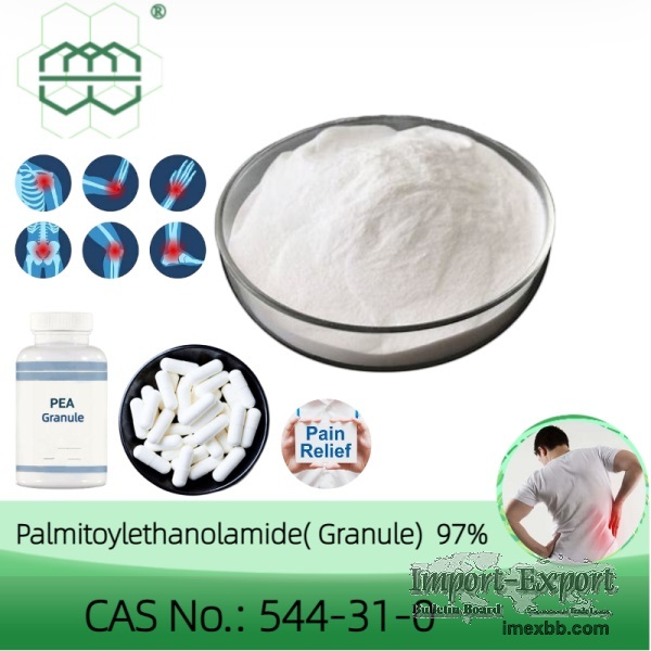 Product name:PEA Other name:N-(2-HYDROXYETHYL)HEXADECANAMIDE; N-HEXADE , CANOYLETHANOLAMINE; PEAPALMIDROL; PALMITYLET , HANOLAMIDE; PALMITOYLETHANOLAMIDE CAS No.:544-31-0 Molecular formula:C18H37NO2 Molecular weight:299.49 Purity:97.0% Appearance:White granulated Powder Packing 1kg/bag ,25Kg/ drum Application:Raw materials of health care products 3Product introduction PEA is a natural fatty acid amide formed from ethanolamine and palmitic acid, It is also found in animal guts, egg yolks, olive oil, safflower, soy lecithin, peanuts and other foods. PEA is an organic synthesis intermediate and pharmaceutical intermediate, which can be used in laboratory research and development process and chemical pharmaceutical research and development process. PEA is an endocannabinoid receptor agonist. PEA has a wide range of potential clinical applications, but its research and popular uses mainly focus on the anti-inflammatory and analgesic effects of low back pain, sciatic nerve pain, osteoarthritis and other diseases. It belongs to the lipid medium and n-acylethanolamine family. PEA inhibits the release of pro-inflammatory mediators from activated mast cells and prevents recruitment of activated mast cells at nerve injury sites. PEA is an endogenous fatty acid amide, belonging to a class of nuclear factor agonists. It has been shown to bind to nuclear receptors (nuclear receptors) and exert a great variety of biological functions related to chronic pain and inflammation. PEA is technically known as a "resolution-promoting lipid signaling molecule. "PEA affects intracellular central control mechanisms that address inflammation and cellular stress. Preclinical and human studies have also investigated its effects on depression, enhanced mental function and memory, autism, multiple sclerosis, obesity and metabolic syndrome. 4Feature The health benefits of PEA include affecting immune cells that control inflammation, especially in the brain. PEA may help reduce the production of inflammatory substances. But PEA primarily acts on receptors on cells that control all aspects of cell function. These receptors are called PPars. PEA and other compounds that help activate PPArs can reduce pain, as well as increase metabolism by burning fat, lower serum triglycerides, raise serum HDL cholesterol, improve blood sugar control and help with weight loss. 5 Applications PEA has been shown to have anti-inflammatory, anti-sensory injury, neuroprotective, and anticonvulsive properties. PEA has been exploring various pain states in people in different clinical trials for inflammatory and pain syndromes. PEA regulates many physiological processes, including pain perception, convulsions, and neurotoxicity.