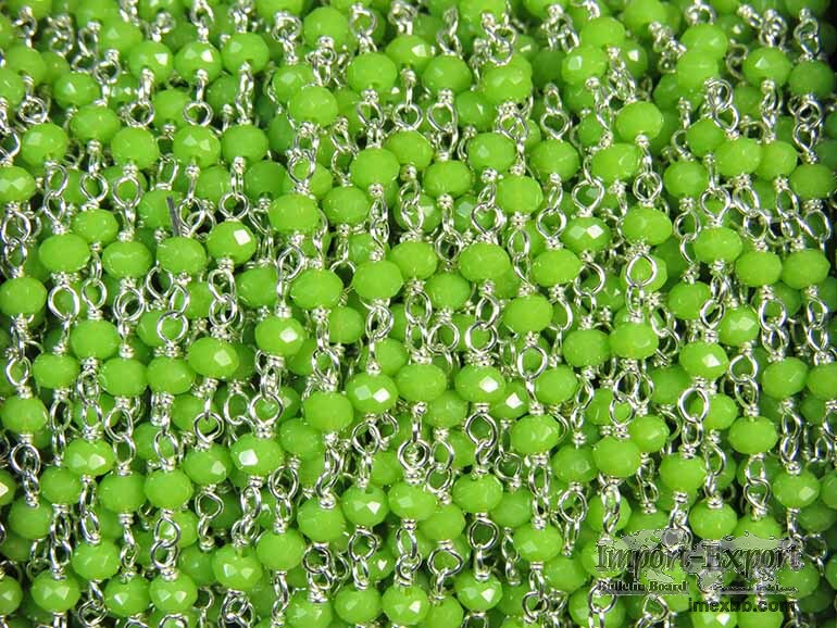 Peridot Green Crystal 3mm Wire Wrapped Rosary Style Chain