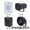 ITEM NO: HC-P7 PIEZO SIREN OPERATING VOLTAGE: DC 6-14V CURRENT DRAW: 200mA FREQUENCY: 3.8KHz SPL: 108db/1m@12V SOUND TYPE: SINGLE TONE COLOR: BLACK/WHITE SIZE: 62(W)*85(L)*56(H)mm